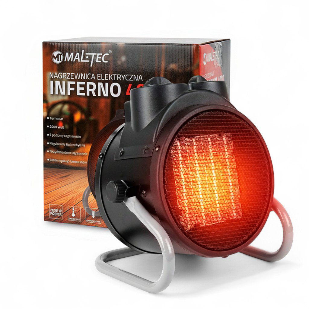 Електричний тепловентилятор Maltec — мобільний опалювально-вентиляційний пристрій, призначений для тимчасового або постійного нагрівання приміщень. Сфера використання електричного тепловентилятора Maltec досить широка: обігрівання та вентиляція житлових, виробничих і допоміжних приміщень невеликого об'єму (квартири, дачі, будівельні об'єкти, тепліці, оранжереї, склади, гаражі, торгові павільйони); сушіння стін і стель під час виконання ремонтних робіт; сушіння білизни тощо. Ця модель, що має теплову потужність 1000/2500 Вт, здатна обігріти приміщення (відповідним способом утеплене, з невеликими тепловими втратами та висотою стелі 3 м) площею до 30 м². Водночас нагрівачем створюється потік повітря, рівний 140 м3/год. Принцип дії тепловентилятора простий — обігрівання приміщень відбувається завдяки інтенсивному нагнітанню й безперервному руху повітряного потоку через нагрівальний елемент, який створюється вбудованим електричним вентилятором. Для пожежної безпеки та запобігання виходу з ладу пристрою у разі досягнення критичного рівня його нагрівання, конструкцією передбачений захист від перегрівання. Для підтримки постійної температури в приміщенні використовується термостат. Електричний тепловентилятор HIGHER має сучасний дизайн, надійний у роботі, простий в експлуатації й обслуговуванні.