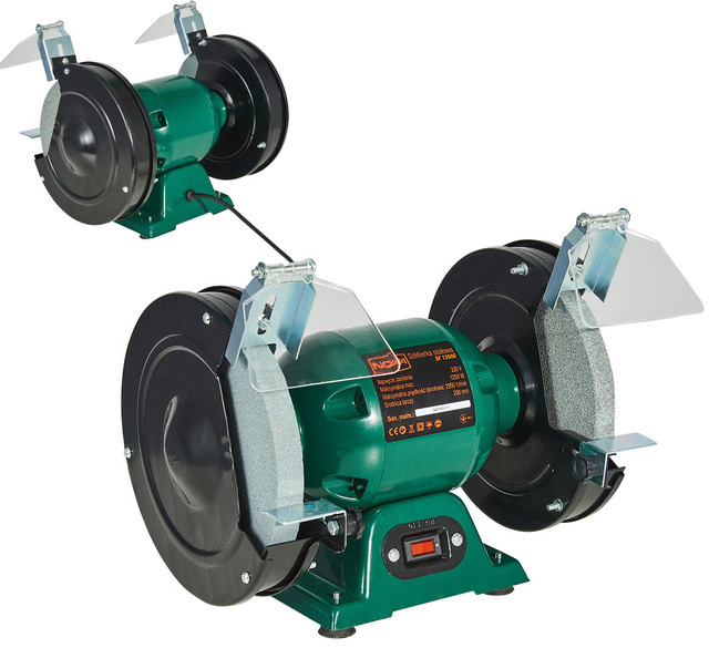 Верстат точильний NOWA SF 1250G оснащений двома абразивними дисками різної зернистості діаметром 200 мм.