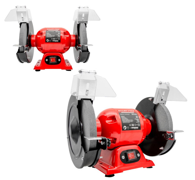 Заточувальний верстат "START PRO" SBG-550S - потужний пристрій для обробки і шліфування ручного інструменту, видалення надлишків металу, а також для вирівнювання металевих поверхонь. Цей пристрій наділений міцним металевим корпусом, усередині якого захований мотор - 550 Вт, що розвиває швидкість на хол. хід - 2950 об/хв, два абразивних круги, з різною зернистістю дають можливість обробляти різний за структурою матеріал. Верстат має компактність і важить 9.0 кг, що дає змогу легко транспортувати і розмістити в невеликій майстерні. Завдяки гумовим ніжкам на станині, точильний апарат більш стійкий до вібрацій.